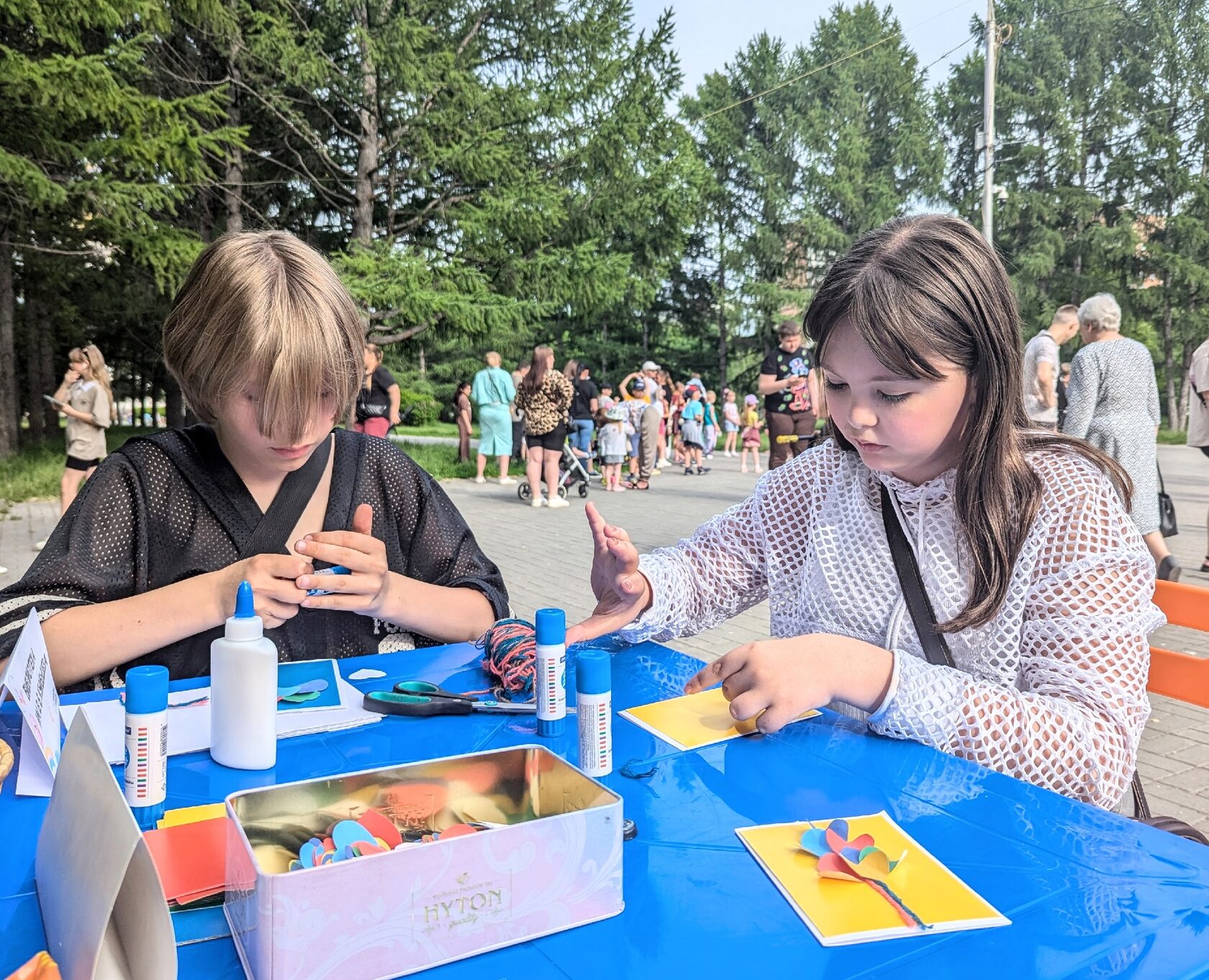 Библиотека имени В. В. Куйбышева организовала творческий мастер-класс «Дизайнерская 3Д открытка», где ребятишки вместе с родителями создали чудесные открытки в виде воздушных шариков-сердец из цветной бумаги и ниток.